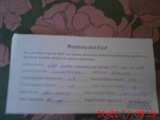 | Certified that this School was Inspected by the Undersigned MEA/DMO Today and the Information Stated Above is as Per Record. | |||||