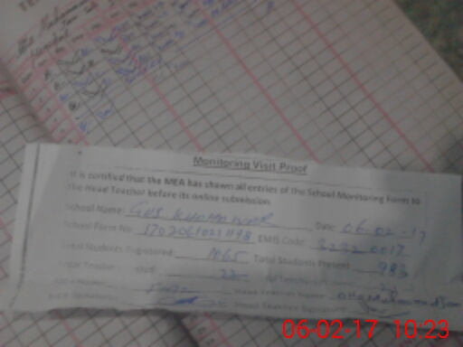 | Certified that this School was Inspected by the Undersigned MEA/DMO Today and the Information Stated Above is as Per Record. | |||||