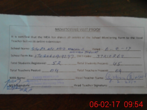 | Certified that this School was Inspected by the Undersigned MEA/DMO Today and the Information Stated Above is as Per Record. | |||||