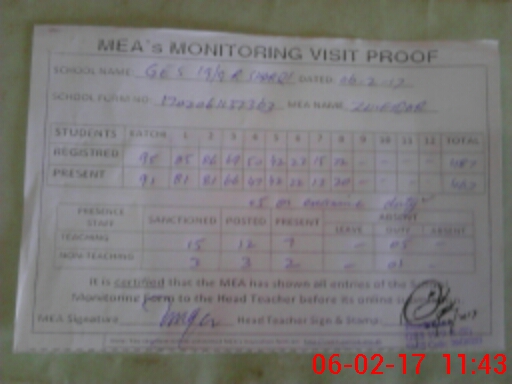 | Certified that this School was Inspected by the Undersigned MEA/DMO Today and the Information Stated Above is as Per Record. | |||||