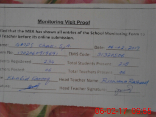 | EMIS Code: 31320506 | Name of School: GMPS CHAK NO.5/A | |||
