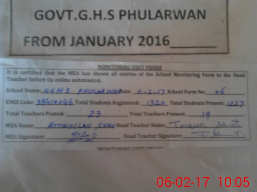 | EMIS Code: 38410046 | Name of School: GGHS PHULARWAN | |||