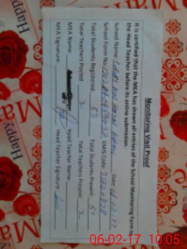 | Certified that this School was Inspected by the Undersigned MEA/DMO Today and the Information Stated Above is as Per Record. | |||||