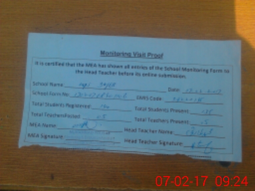 | Attendance Register | Head Teacher | MEA with School | Visit Proof |