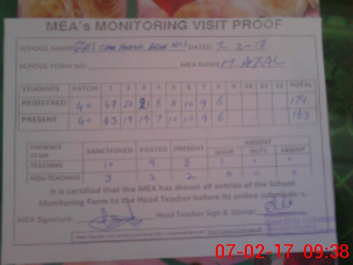 | Certified that this School was Inspected by the Undersigned MEA/DMO Today and the Information Stated Above is as Per Record. | |||||