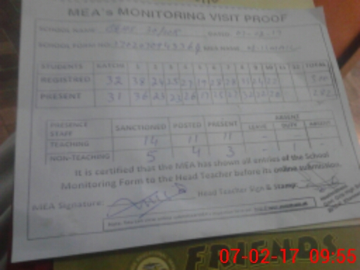 | Attendance Register | Head Teacher | MEA with School | Visit Proof |