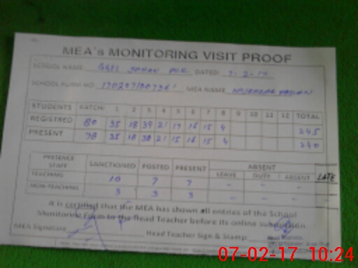 | Certified that this School was Inspected by the Undersigned MEA/DMO Today and the Information Stated Above is as Per Record. | |||||