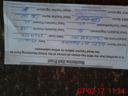| Certified that this School was Inspected by the Undersigned MEA/DMO Today and the Information Stated Above is as Per Record. | |||||