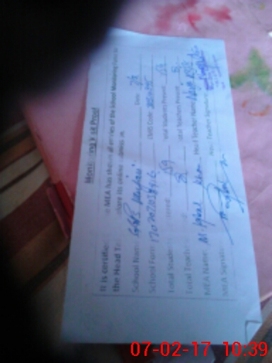 | Certified that this School was Inspected by the Undersigned MEA/DMO Today and the Information Stated Above is as Per Record. | |||||