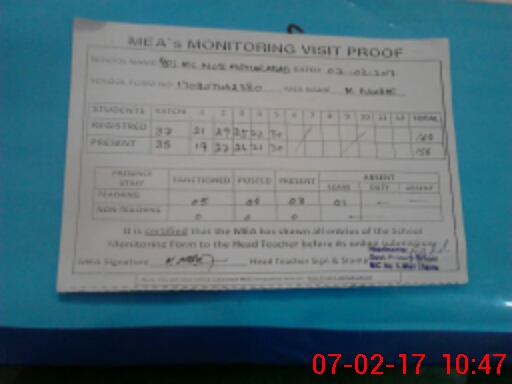 | Attendance Register | Head Teacher | MEA with School | Visit Proof |