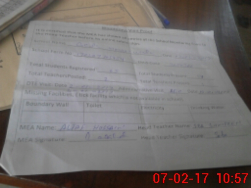 | Attendance Register | Head Teacher | MEA with School | Visit Proof |