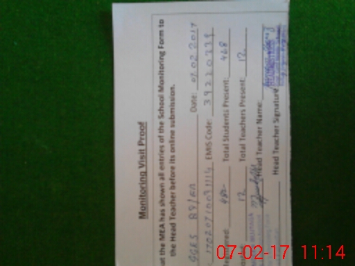 | Certified that this School was Inspected by the Undersigned MEA/DMO Today and the Information Stated Above is as Per Record. | |||||