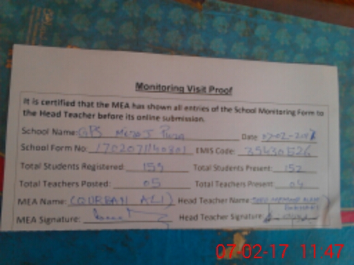| EMIS Code: 35430526 | Name of School: GPS MERAJ PURA | |||