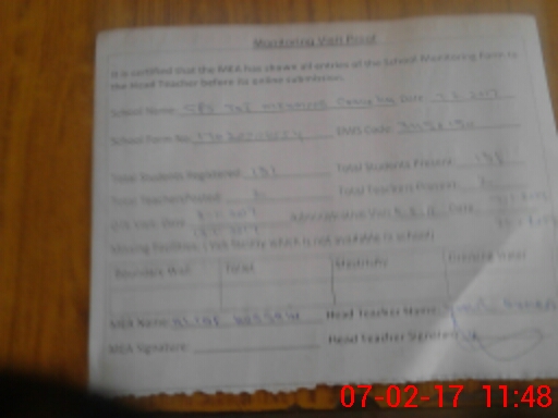 | Attendance Register | Head Teacher | MEA with School | Visit Proof |