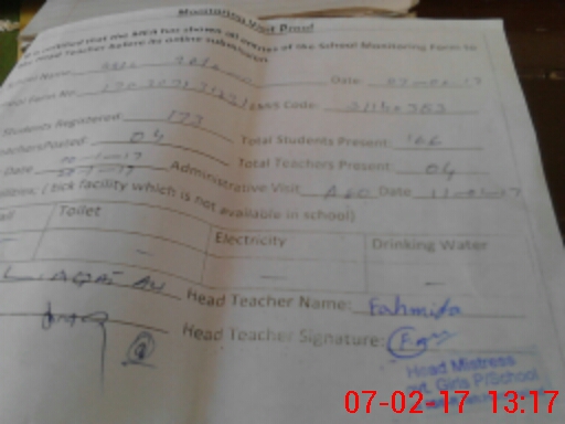 | Name: FE**** KH**** Designation: (School Headmaster's/Headmistress's) PST Phone/Cell Number: 03**** |