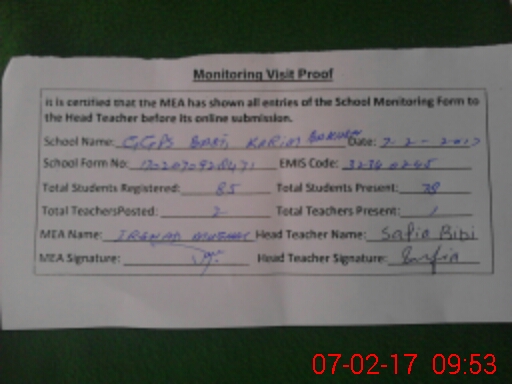 | Certified that this School was Inspected by the Undersigned MEA/DMO Today and the Information Stated Above is as Per Record. | |||||