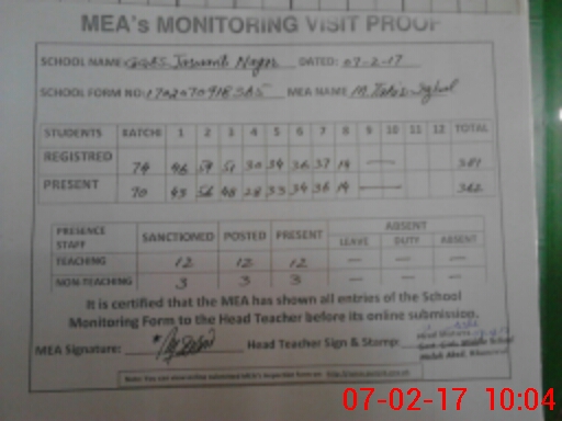 | Certified that this School was Inspected by the Undersigned MEA/DMO Today and the Information Stated Above is as Per Record. | |||||