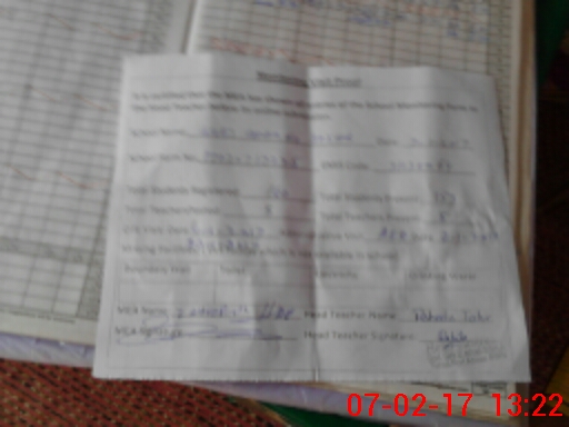 | Attendance Register | Head Teacher | MEA with School | Visit Proof |