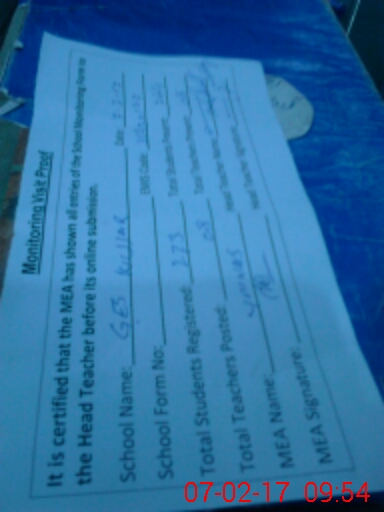 | Attendance Register | Head Teacher | MEA with School | Visit Proof |