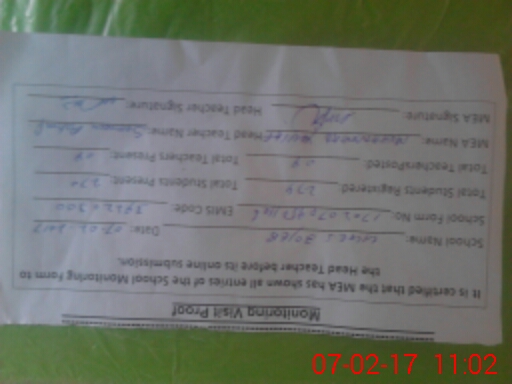| Attendance Register | Head Teacher | MEA with School | Visit Proof |