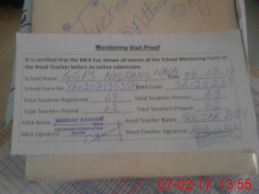| Certified that this School was Inspected by the Undersigned MEA/DMO Today and the Information Stated Above is as Per Record. | |||||
