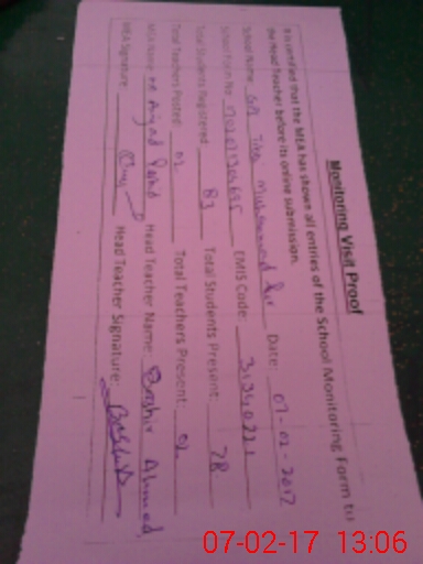 | Certified that this School was Inspected by the Undersigned MEA/DMO Today and the Information Stated Above is as Per Record. | |||||