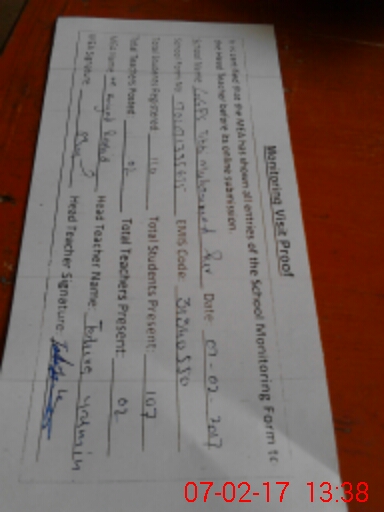 | Attendance Register | Head Teacher | MEA with School | Visit Proof |