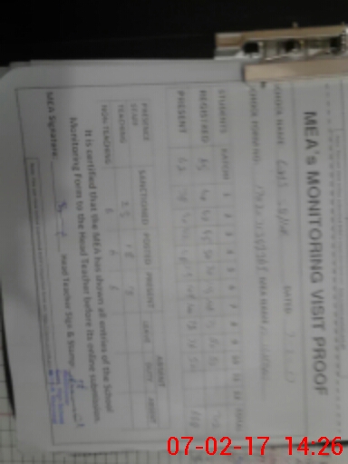 | Certified that this School was Inspected by the Undersigned MEA/DMO Today and the Information Stated Above is as Per Record. | |||||