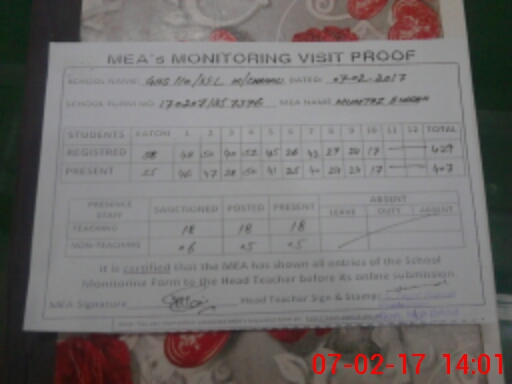 | Certified that this School was Inspected by the Undersigned MEA/DMO Today and the Information Stated Above is as Per Record. | |||||