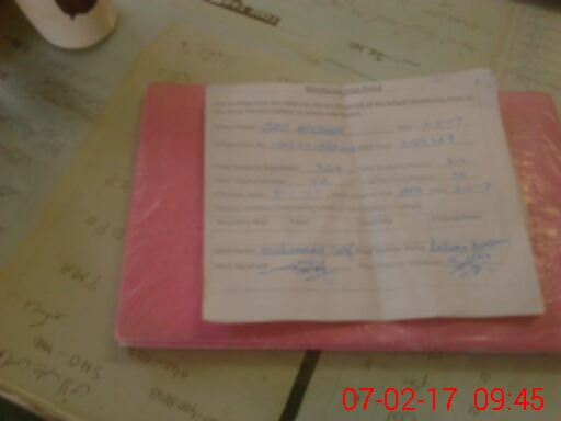 | School Visited by School Health & Nutrition Supervisor (No. of Visits) | 1 | Name1: | M ARSHAD | Name2: | |