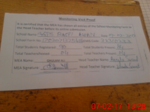 | EMIS Code: 32310233 | Name of School: GGPS BASTI AWAN | |||
