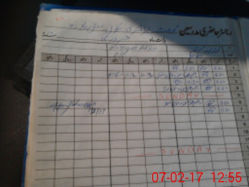 | CNIC | Full Name | Designation | R/C | Absence During Last Calender Month |