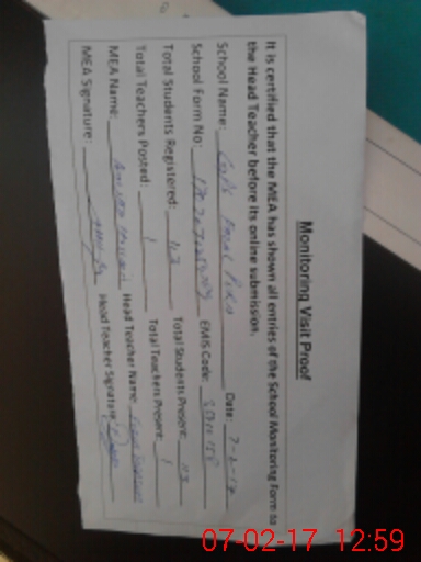 | Certified that this School was Inspected by the Undersigned MEA/DMO Today and the Information Stated Above is as Per Record. | |||||