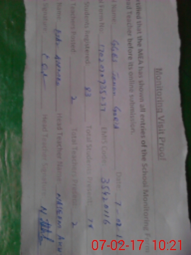 | Certified that this School was Inspected by the Undersigned MEA/DMO Today and the Information Stated Above is as Per Record. | |||||
