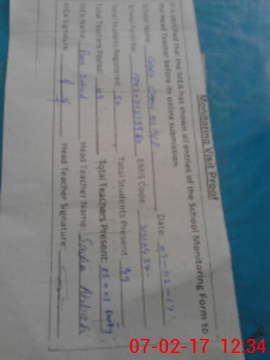 | Certified that this School was Inspected by the Undersigned MEA/DMO Today and the Information Stated Above is as Per Record. | |||||