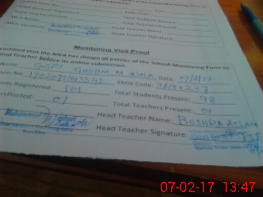 | EMIS Code: 36140237 | Name of School: GGPS GHULAM MOHAMMAD WALA | |||