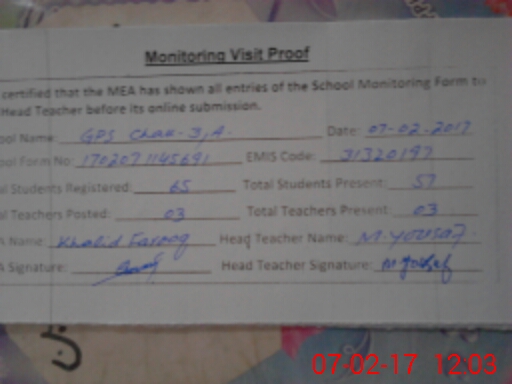 | EMIS Code: 31320197 | Name of School: GPS CHAK 3/A | |||