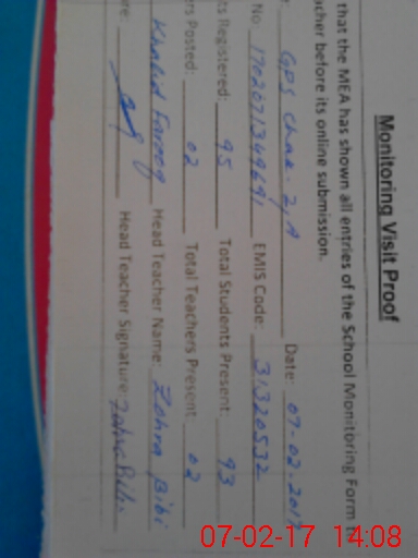 | EMIS Code: 31320532 | Name of School: GGPS CHAK NO.2/A | |||