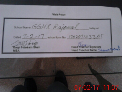 | School Visited by School Health & Nutrition Supervisor (No. of Visits) | 1 | Name1: | Mudasar | Name2: | Mudasar |