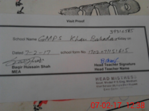 | EMIS Code: 39310585 | Name of School: GMPS KHAN BAHADAR | |||