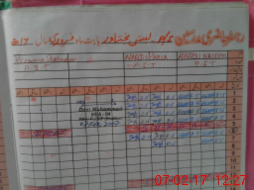 | CNIC | Full Name | Designation | R/C | Absence During Last Calender Month |