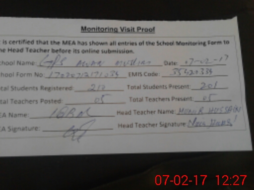 | EMIS Code: 35420334 | Name of School: GPS AWAN MUSLIM P/O KHAS | |||