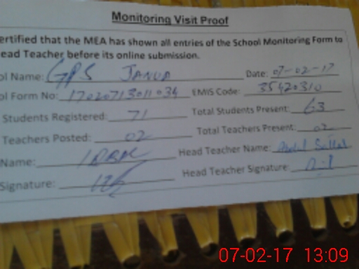 | Certified that this School was Inspected by the Undersigned MEA/DMO Today and the Information Stated Above is as Per Record. | |||||