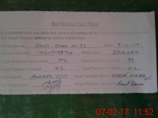 | EMIS Code: 35440614 | Name of School: GGES CHAK NO. 23 | |||