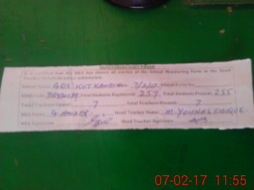 | Attendance Register | Head Teacher | MEA with School | Visit Proof |
