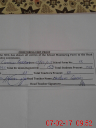 | Attendance Register | Head Teacher | MEA with School | Visit Proof |