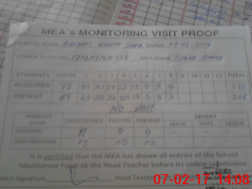 | Attendance Register | Head Teacher | MEA with School | Visit Proof |