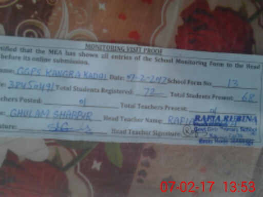 | EMIS Code: 38450491 | Name of School: GGPS KANGRA KADHI | |||