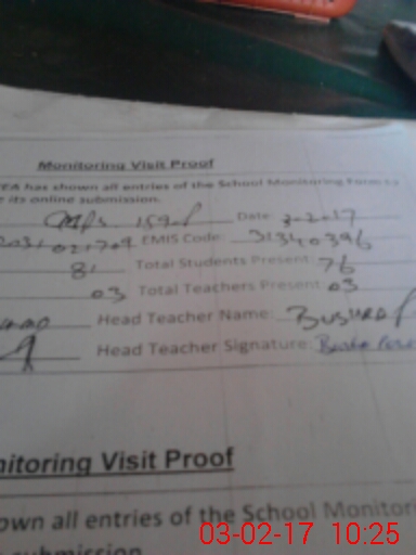 | Attendance Register | Head Teacher | MEA with School | Visit Proof |
