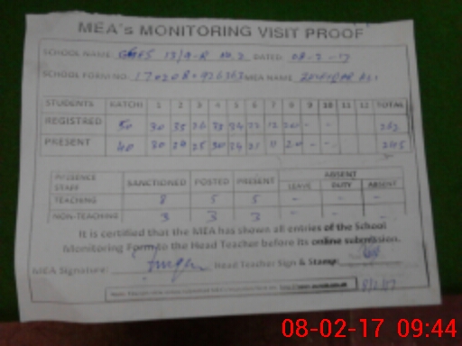| Attendance Register | Head Teacher | MEA with School | Visit Proof |